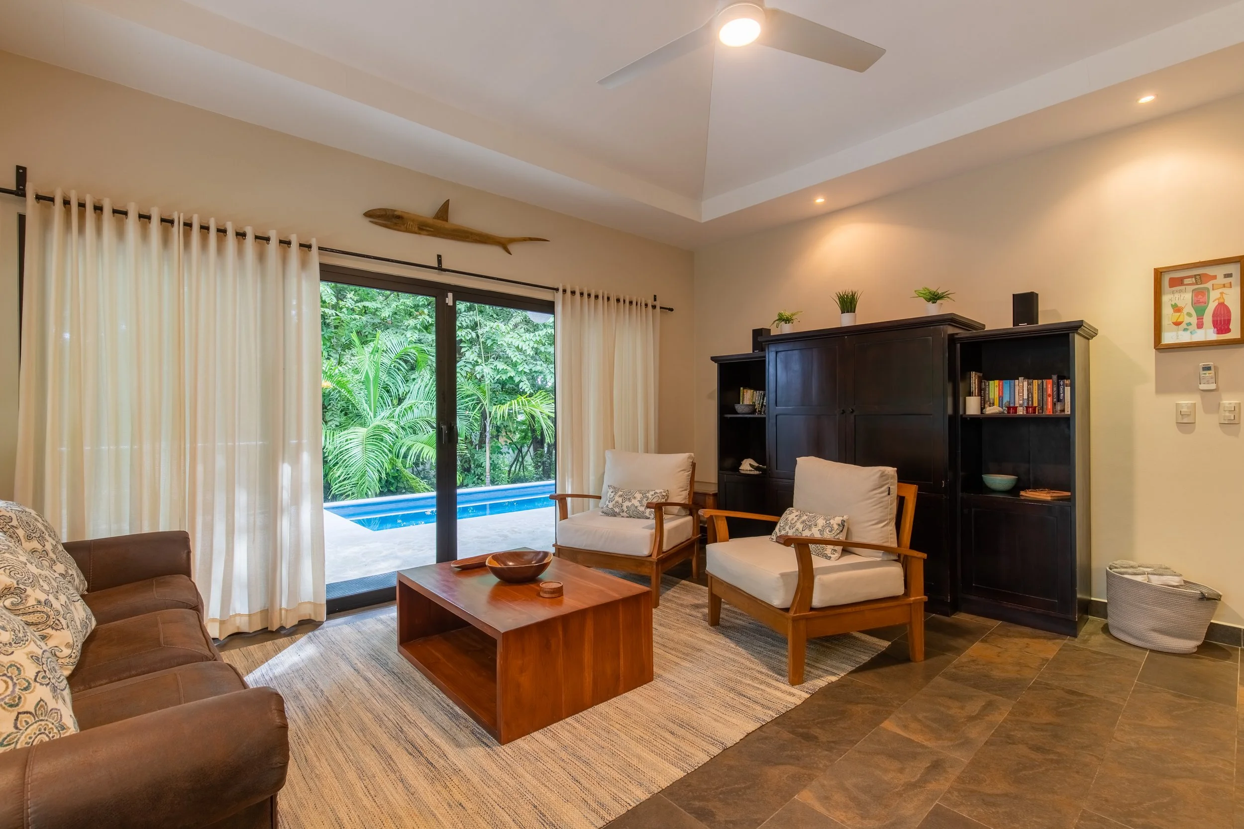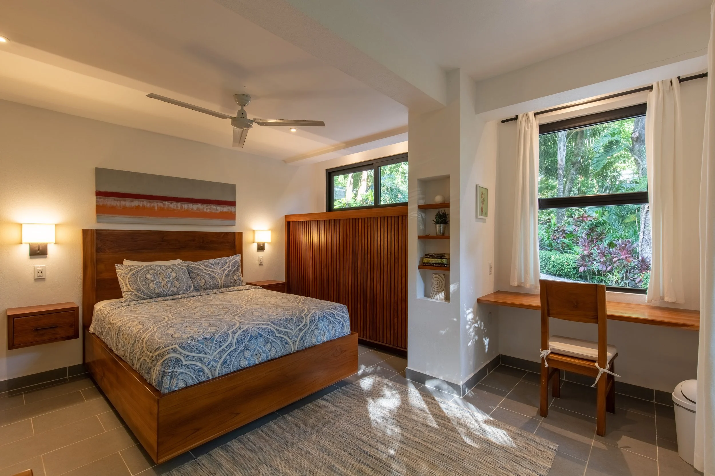 Set in the beautiful K Section of Playa Guiones, Four Winds Properties offers two beautiful modern jungle houses within walking distance from the beach. Both twin casas offer accommodations with private outdoor swimming pools, private parking and gorgeous lush gardens. “Serenity” & “Celestial” are impeccably clean living spaces with open kitchen and common areas, and have walkouts to the raised pool decks.